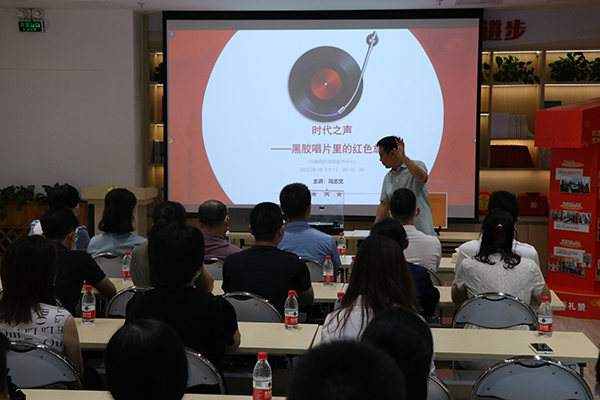 2022年,我们喜迎党的二十大召开、延安文艺座谈会80周年纪念、香港回归25周年,为此,东莞市民盈国贸商圈党总支于2022年9月16日以黑胶为载体,借音乐为桥梁开展一堂音乐党课,邀请黑胶唱片收藏家冯志文带领党员现场赏析黑胶音乐,重温党史,润泽心灵,提升党员的艺术修养。