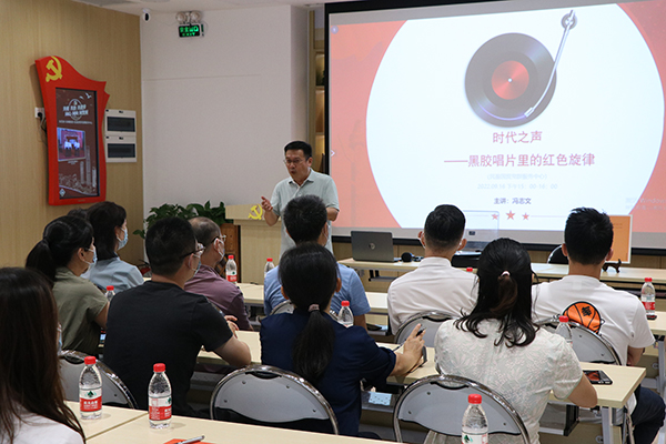 聆听时代声音,剖析背后故事。冯志文老师以音乐为“灯”,通过黑胶与红歌的碰撞,原汁原味的歌声与旋律,引导全体党员重温百年党史,讲述每段音乐背后的感人故事,回顾入党初心。百年峥嵘党史伴随着每段澎湃的音乐、跳动的旋律,变得更加立体、饱满。民盈党员表示,通过黑胶音乐学习党史,别开生面,令人印象深刻,红色基因随着音乐的艺术形式扎根进在大家的心中,在震撼中受到教育,也激发了大家干事业的决心。从党史中吸取精神力量,在思想上、行动上自觉传承党的光荣传统和优良作风,以实际行动迎接党的二十大胜利召开。